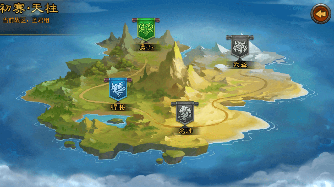 以图中【圣君组-初赛-天柱】为例,一位参赛选手至少需要在七天内完成由无双勇士到无双(至尊)武圣的挑战,才能够晋级复赛。